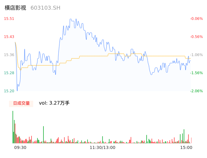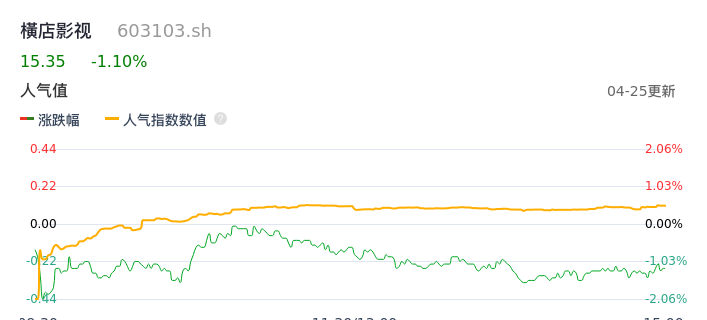 04月25日,横店影视收报15.35,股价涨幅-1.10%,成交金额5023.11万元,换手率0.52%。
