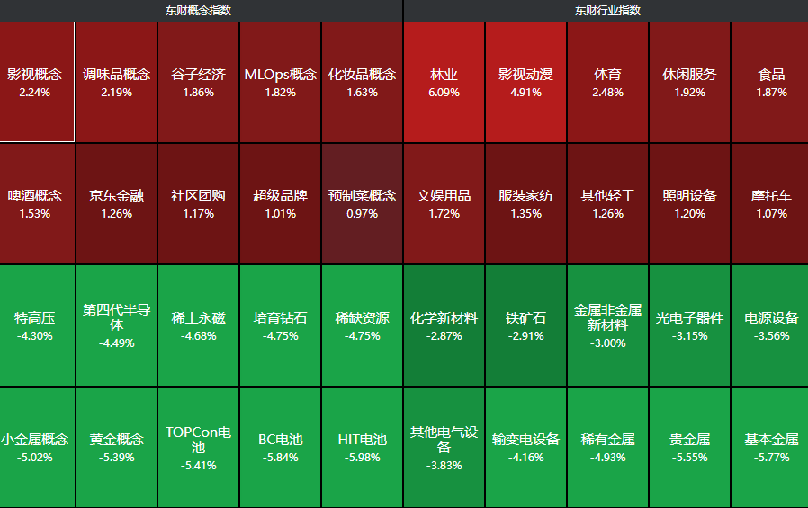 上证报中国证券网讯 2月5日早盘,市场震荡调整,三大指数均跌超1%。截至午间收盘,沪指跌1.03%,深证成指跌1.81%,创业板指跌1.94%。盘面上看,大消费板块表现强势,食品饮料、零售、影视院线方向涨幅居前,横店影视6天5板,杭州解百2连板,安记食品等涨停。银行板块逆势走强,厦门银行涨超6%。下跌方面,基本金属、贵金属、铁矿石等板块跌幅靠前。