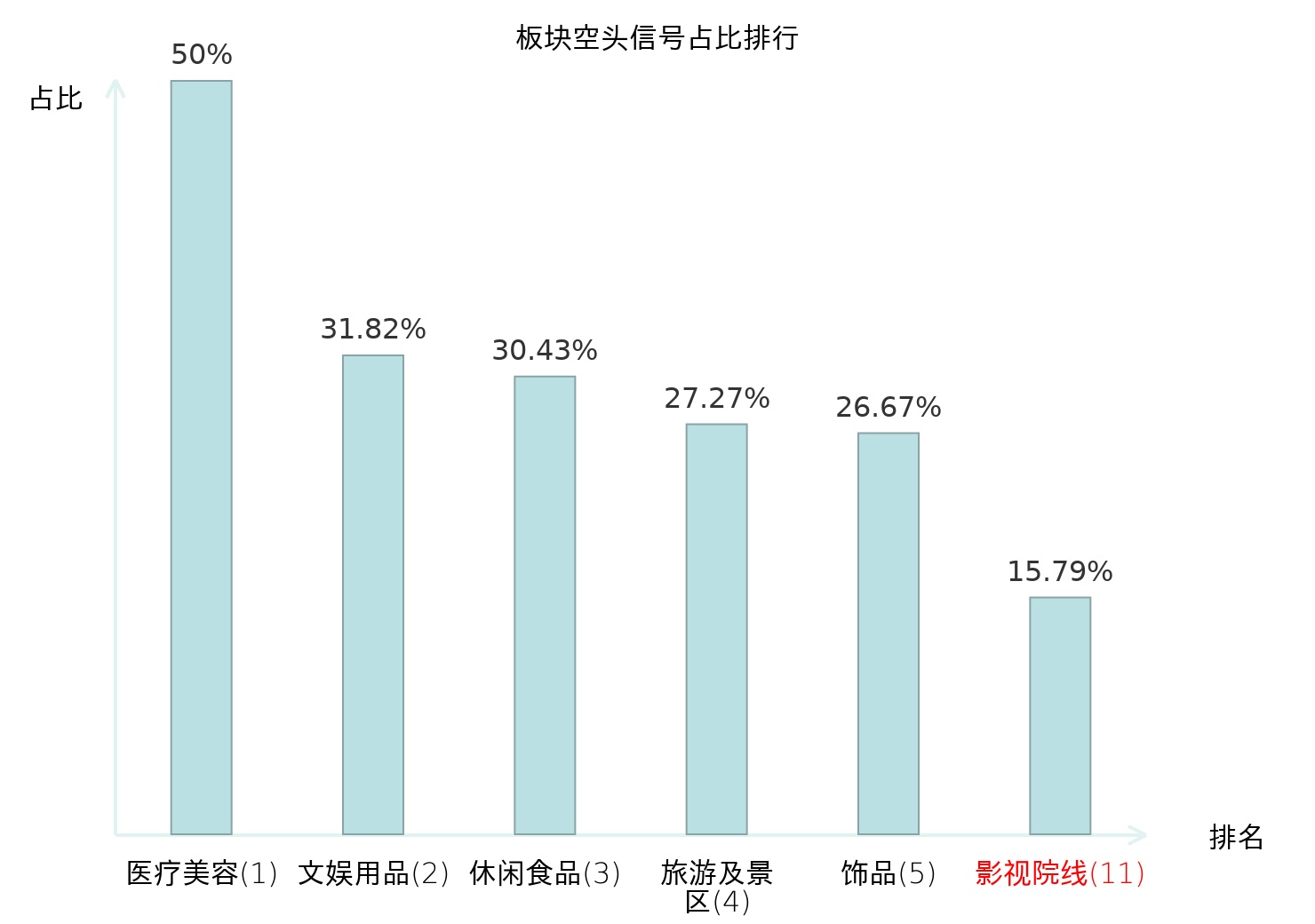 全市场所有行业板块中主力空头信号占比排名中,医疗美容板块位居第一。服装家纺板块名次提升最快,较昨日上升114位。