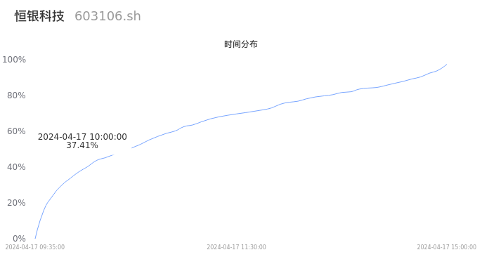 根据成交分布分析,该股票当天放量成交,成交清淡。时间上看,早盘前半小时成交量占据当天总成交量的37.41%;价格上看,成交呈现右偏峰。成交分布分析主要研究股票成交的分布特性,不具有预测功能,请知悉。