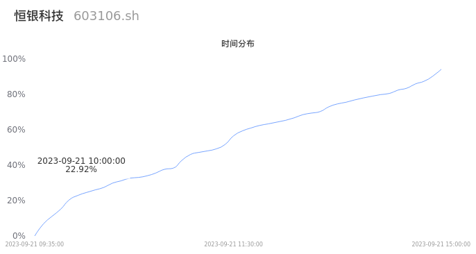 根据成交分布分析,该股票当天放量成交,成交清淡。时间上看,早盘前半小时成交量占据当天总成交量的22.92%;价格上看,成交呈现中间峰。成交分布分析主要研究股票成交的分布特性,不具有预测功能,请知悉。