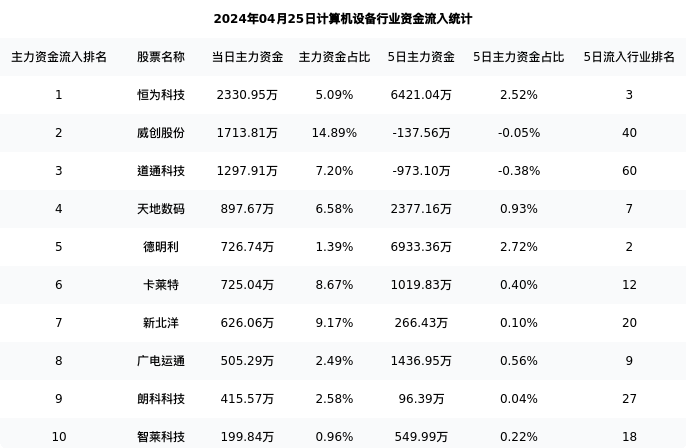 从主力资金流向来看,计算机设备行业今日主力资金流入40.80亿元,在所有申万二级行业中排名:90/131。