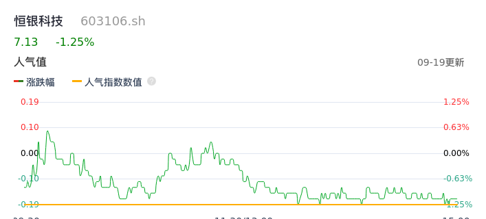 09月19日,恒银科技收报7.13,股价涨幅-1.25%,成交金额1.28亿元,换手率3.44%。