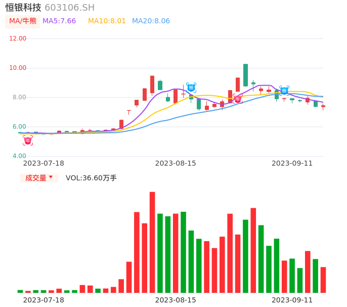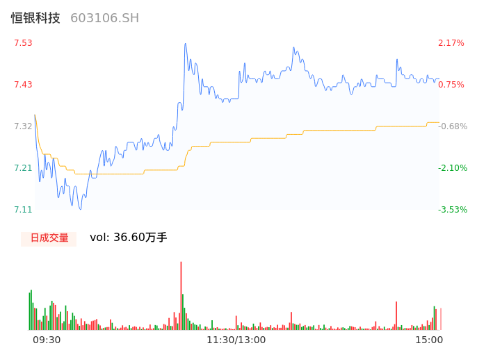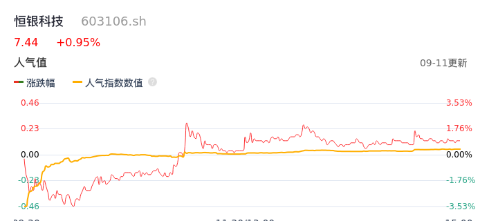 09月11日,恒银科技收报7.44,股价涨幅0.95%,成交金额2.68亿元,换手率7.03%。