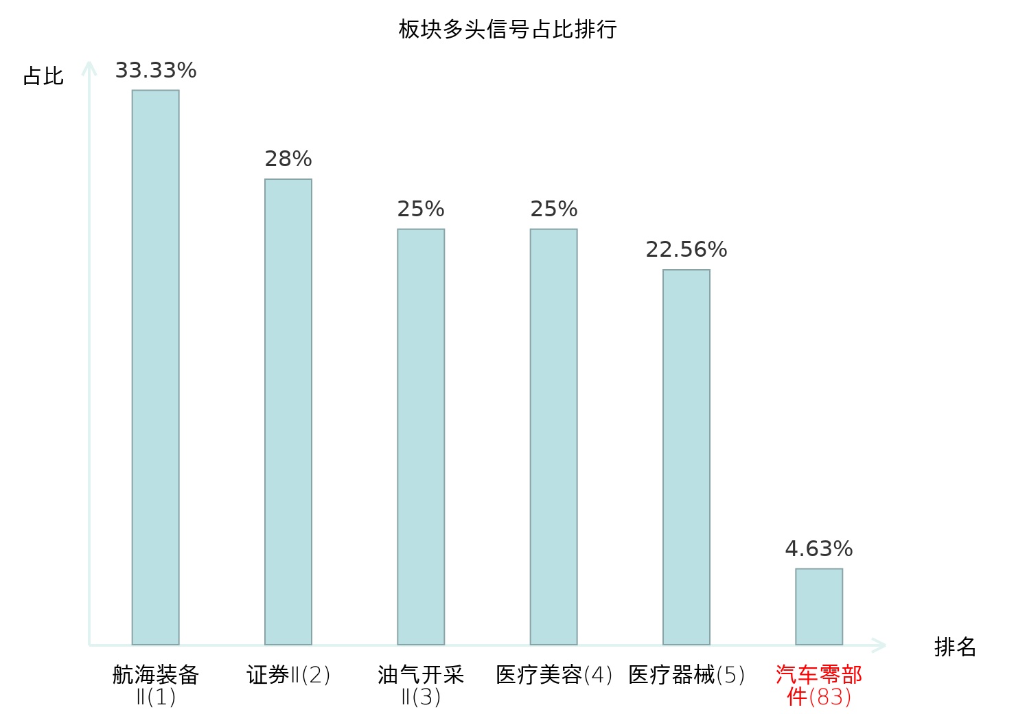 全市场所有行业板块中主力多头信号占比排名中,航海装备Ⅱ板块位居第一。油气开采Ⅱ板块名次提升最快,较昨日上升123位。