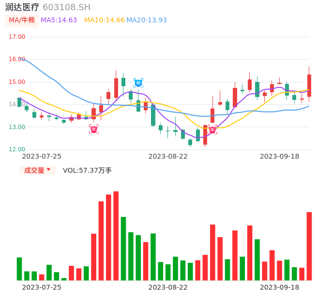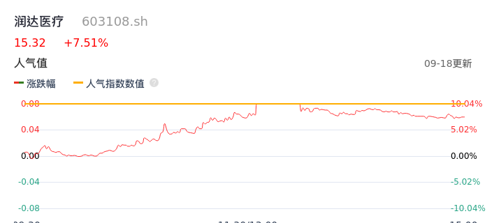 09月18日,润达医疗收报15.32,股价涨幅7.51%,成交金额8.69亿元,换手率9.90%。