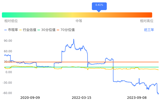 2023年09月08日,润达医疗上涨1.26%收于14.52,今日成交金额3.31亿元。下文将从市盈率PETTM、市净率PB、市现率3个角度去分析公司估值情况。