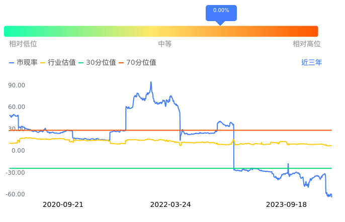 2023年09月19日,润达医疗上涨3.20%收于15.81,今日成交金额8.75亿元。下文将从市盈率PETTM、市净率PB、市现率3个角度去分析公司估值情况。