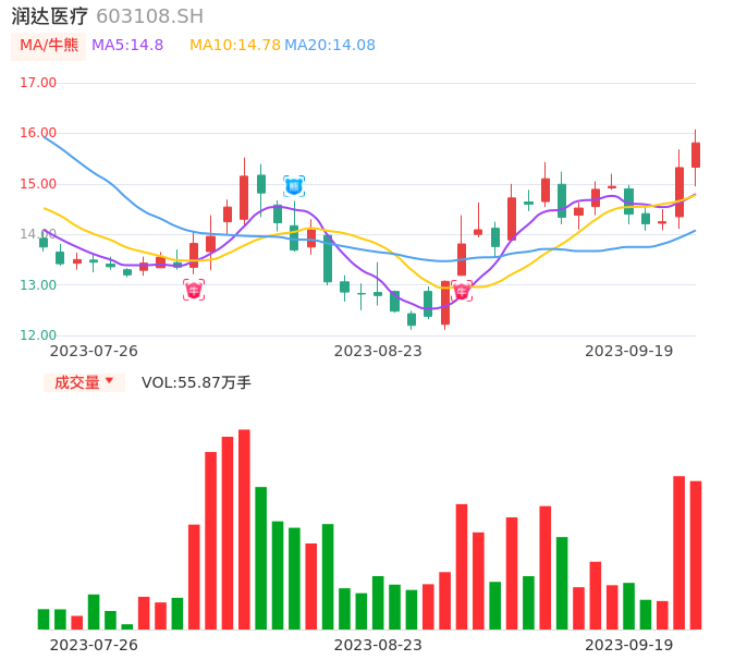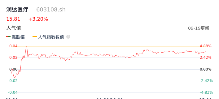09月19日,润达医疗收报15.81,股价涨幅3.20%,成交金额8.75亿元,换手率9.64%。