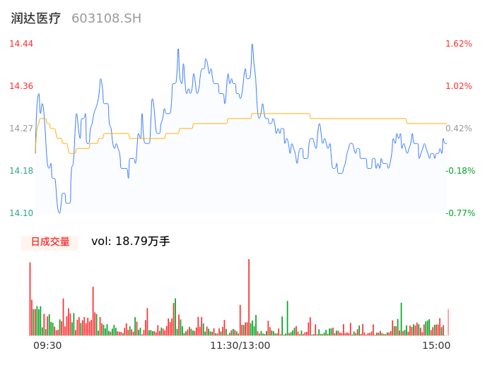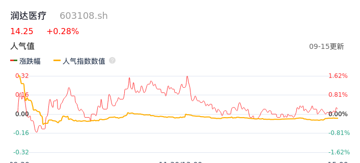09月15日,润达医疗收报14.25,股价涨幅0.28%,成交金额2.68亿元,换手率3.24%。