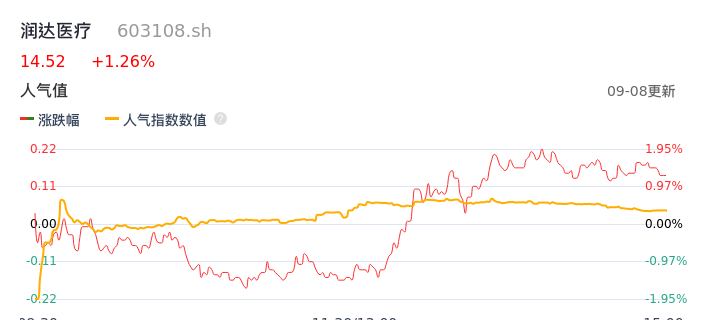 09月08日,润达医疗收报14.52,股价涨幅1.26%,成交金额3.31亿元,换手率3.98%。