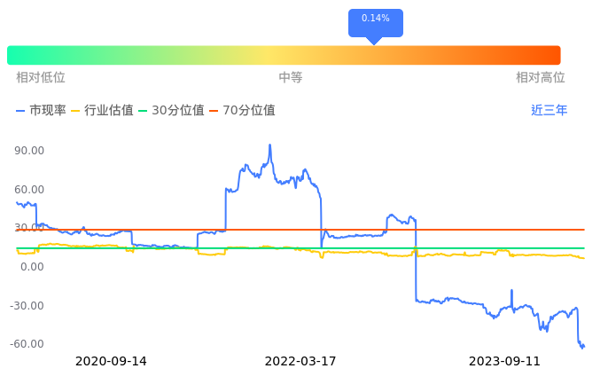 2023年09月11日,润达医疗上涨2.55%收于0.00,今日成交金额0.00元。下文将从市盈率PETTM、市净率PB、市现率3个角度去分析公司估值情况。