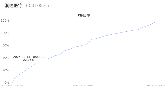 603108润达医疗2023年09月15日成交18.79万手,成交金额2.68亿元,相较昨日缩量3861手,换手率3.24%,成交清淡。