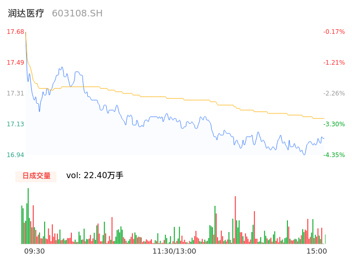 05月15日,润达医疗收报17.03,股价涨幅-3.84%,成交金额3.84亿元,换手率3.74%。
