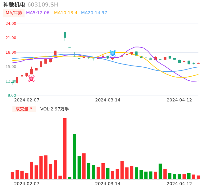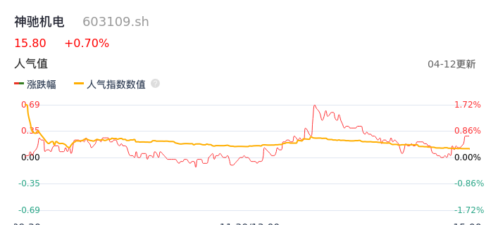 04月12日,神驰机电收报15.80,股价涨幅0.70%,成交金额4687.74万元,换手率1.43%。