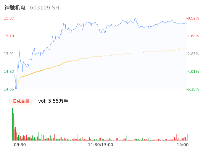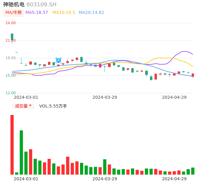 04月29日,神驰机电收报15.32,股价涨幅-0.84%,成交金额8365.40万元,换手率2.67%。