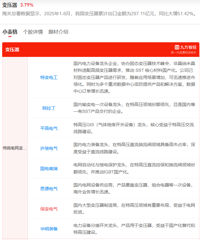 电气设备板块6日盘中再度飙升,截至发稿,中能电气涨超12%,摩恩电气涨停斩获3连板,神驰机电、佳电股份、中国西电、正泰电器、保变电气等均涨停。