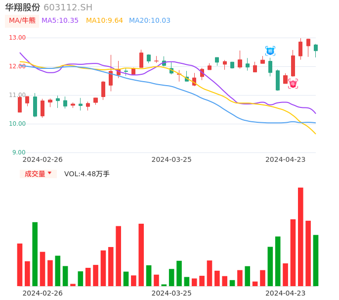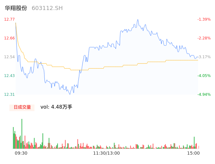 04月23日,华翔股份收报12.54,股价涨幅-3.17%,成交金额5609.90万元,换手率1.03%。