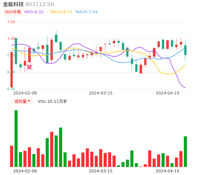 04月15日,金能科技收报6.91,股价涨幅-3.22%,成交金额7045.20万元,换手率1.19%。