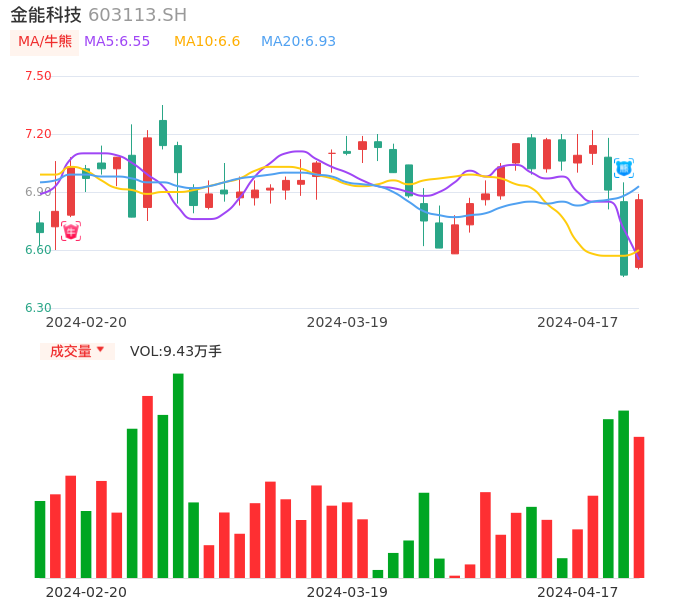 04月17日,金能科技收报6.86,股价涨幅6.03%,成交金额6365.60万元,换手率1.11%。