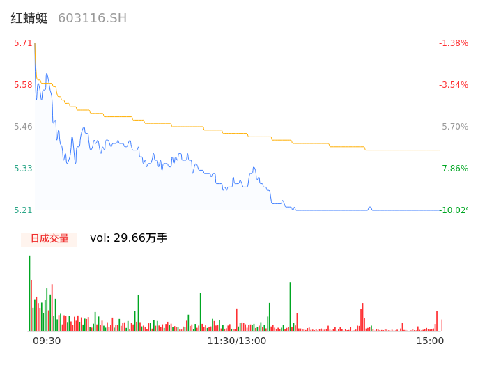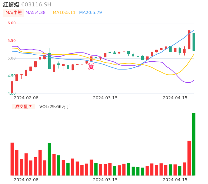 04月15日,红蜻蜓收报5.22,股价涨幅-9.84%,成交金额1.60亿元,换手率5.15%。