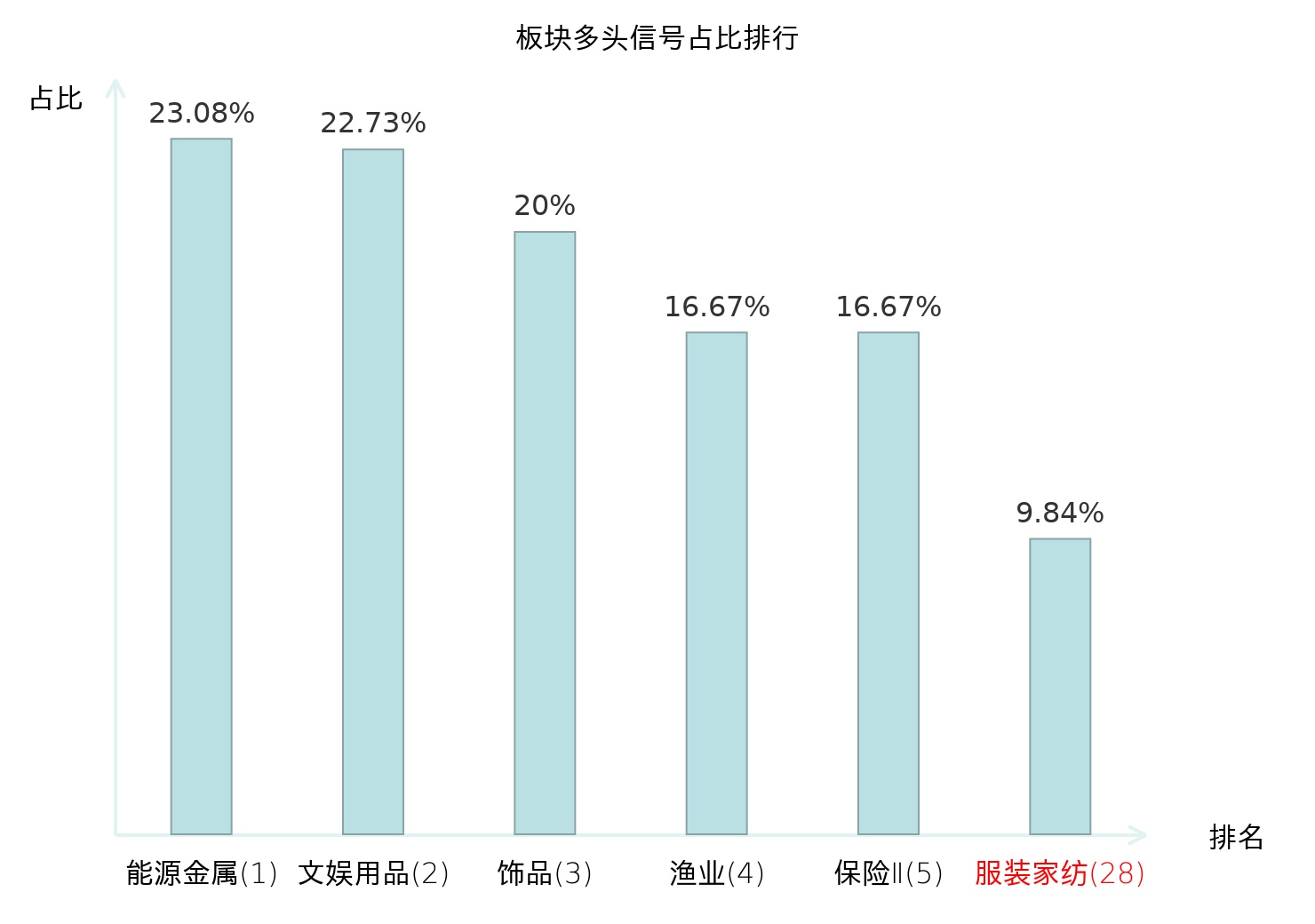 全市场所有行业板块中主力多头信号占比排名中,能源金属板块位居第一。保险Ⅱ板块名次提升最快,较昨日上升120位。