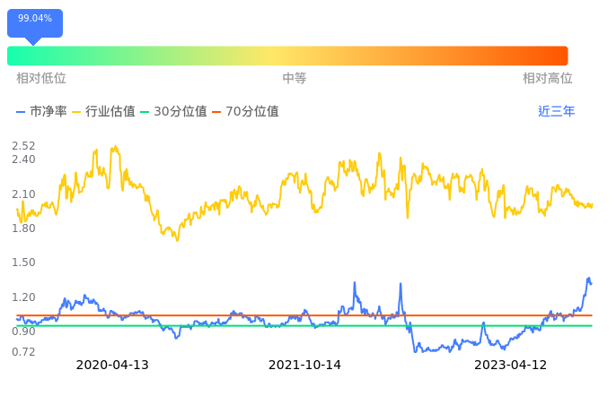 ST万林当前市净率PB为1.32,在所属的物流中,市净率PB排8,前五名分别为物产中大市净率0.82、瑞茂通市净率0.83、建发股份市净率0.85、中国外运市净率0.92、厦门国贸市净率0.95。ST万林当前市净率PB为1.32,超过近3年99.04%的历史数据。