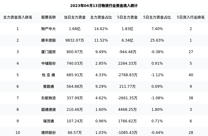 从主力资金流向来看,物流行业今日主力资金流入17.88亿元,在所有申万二级行业中排名:101/131。