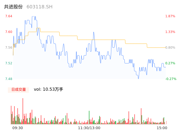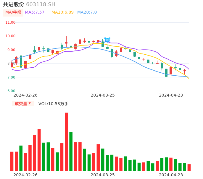 04月23日,共进股份收报7.52,股价涨幅0.27%,成交金额7962.27万元,换手率1.34%。