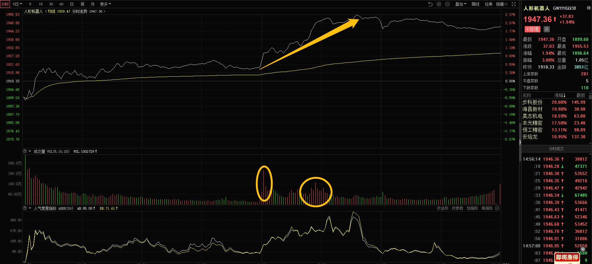 我们在午间复盘中说到午盘前明显的集体异动,资金流入的痕迹,下午一开盘就拉升,最高涨超2%+,板块个股涨幅超过7%以上的,有30多只,10多只涨停,日内涨停板最多,关于机器人的催化,我们在中午就给大家整理了,今天不少中军股也都开始大涨,涨停,这是明显的机构大资金介入的痕迹:三花智控、万向钱潮、长盈精密、绿地谐波、拓普集团、五洲新春、浙江荣泰,由于下午补量,且市场连续3天保持在2.1万亿上方的成交量,市场的资金风格还是偏向选中大盘股,这部分也比较能带指数,帮助指数走10连阳,所以只要明天还是成交量在2万亿上方,分化行情的话,就还是中大盘股可能会更占优。
