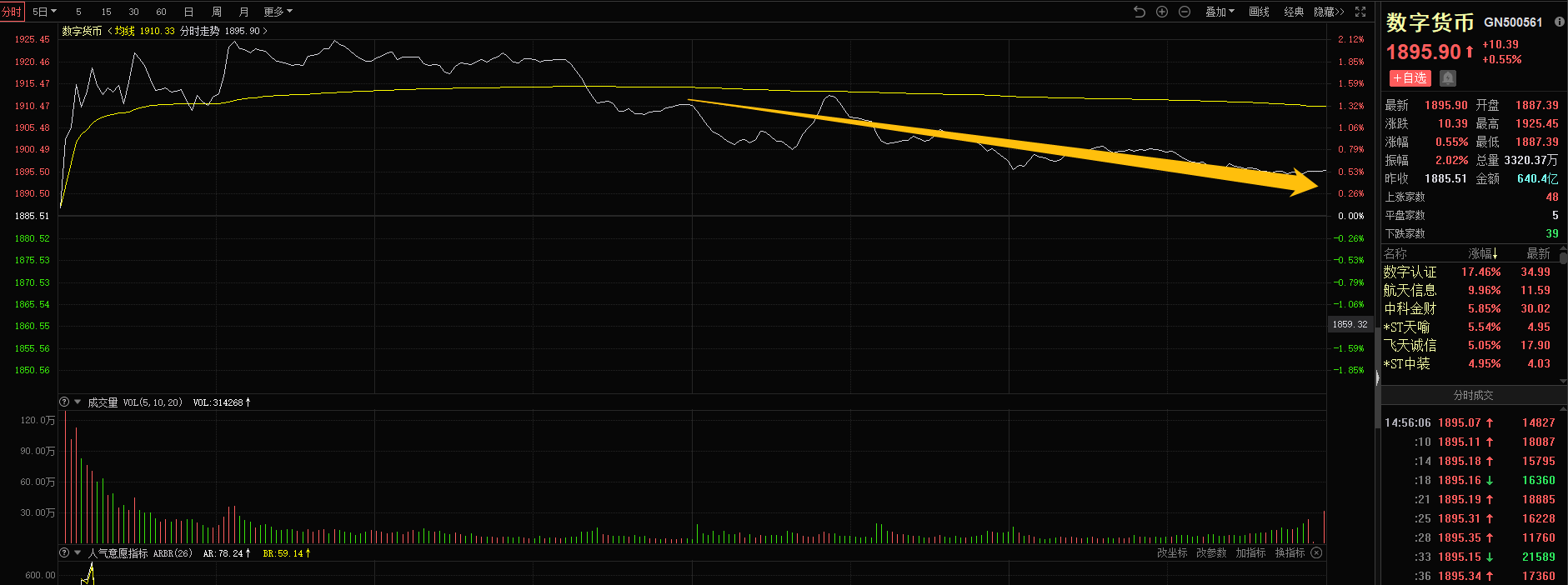 数字货币方向下午走弱,和午间复盘观点基本一致,机器人一上来,数字货币2只涨停,翠微股份下午板上被砸之后就没有回封的动力了,主要是左高压力资金也畏高,而御银股份开板后快速回封,盘中多个一万手大单顶着,最终它晋级2板封住,也正常这波先涨停的是它,今天早盘一字板开的也是它,但是这个位置数字货币要注意后续有没有新的消息发酵,否则资金也会被机器人虹吸走,毕竟今天的机器人是大小盘一起涨,机构游资一起上了。