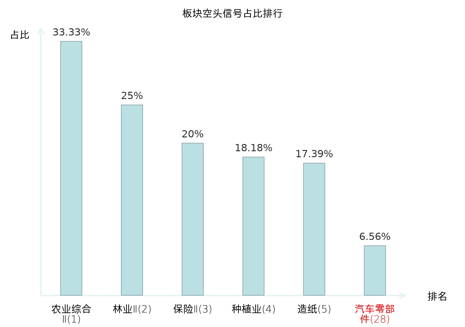 从主力宝信号数据分析,浙江荣泰所属的汽车零部件板块中共有17只股票发出主力空头信号,主力空头信号占比在全行业中排名第28位,较昨日上升24位。排名的上升表明主力对于该板块的卖出意愿增强,这一变化对投资者判断市场情绪和潜在风险提供了重要参考。全市场所有行业板块中主力空头信号占比排名中,农业综合Ⅱ板块位居第一;炼化及贸易板块名次提升最快,较昨日上升115位。这些变动揭示了不同行业间主力资金动向的变化,为投资者提供了关于市场动态和趋势的重要线索。