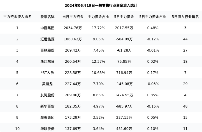 从主力资金流向来看,一般零售行业今日主力资金流入9.15亿,在所有申万二级行业中排名:43/131。