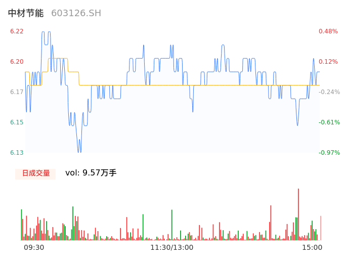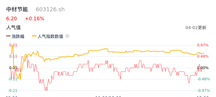 04月02日,中材节能收报6.20,股价涨幅0.16%,成交金额5914.55万元,换手率1.57%。