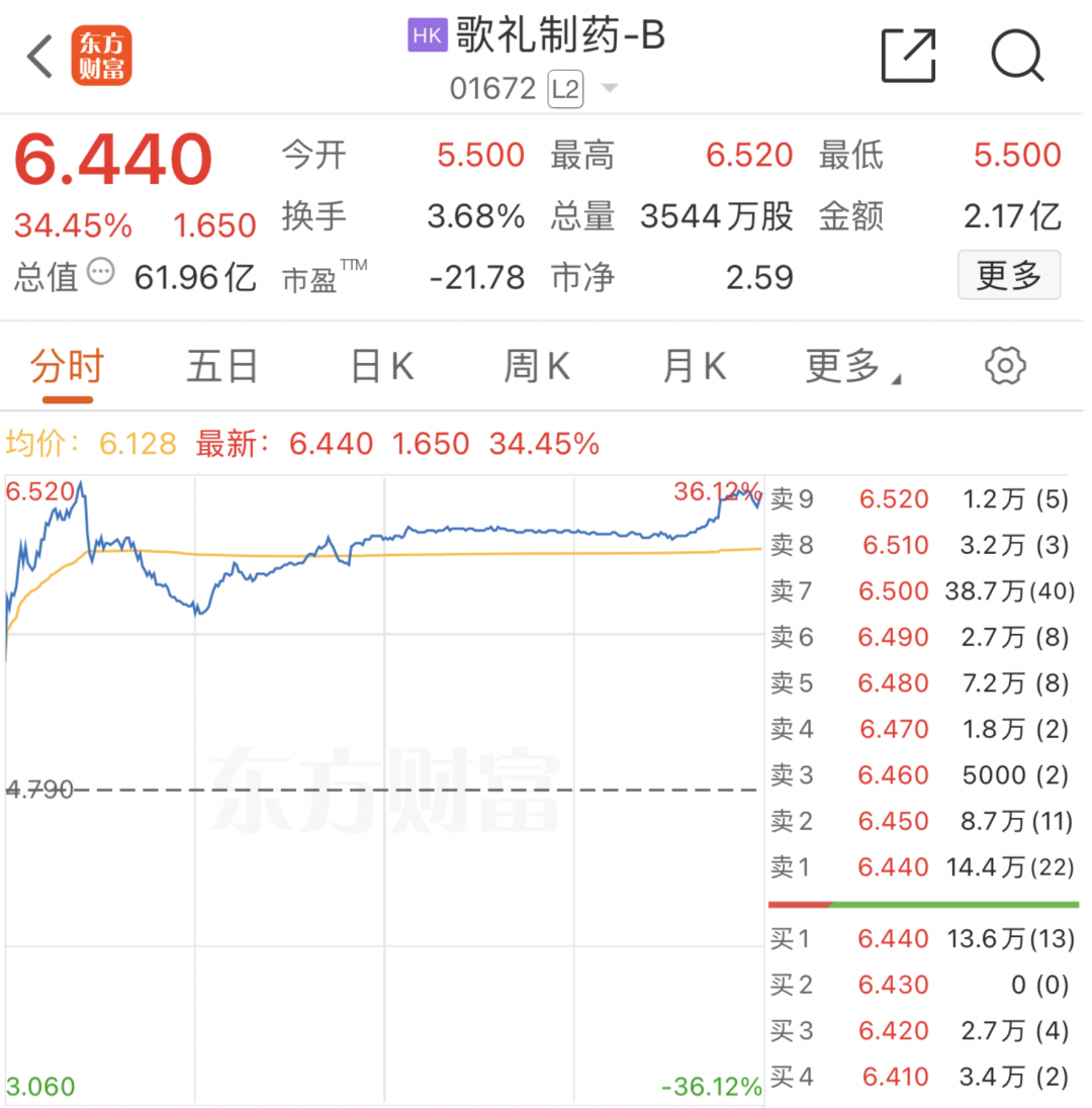 与此同时,歌礼制药发布的一则利好公告也引发市场高度关注。
