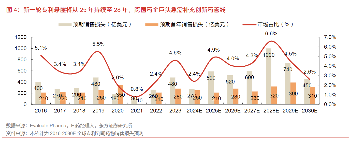 创新药产业链景气度提升:政策、投融资和海外授权BD国内创新药产业链景气度逐渐提升。政策层面全链条支持创新药的发展,尤其是在关键的支付环节,我国医保支付政策向创新药倾斜,各地方政府也给予创新药产业链资金支持;投融资层面大型Pharma研发投入稳定增长,Biotech投融资企稳;国产创新药海外授权BD交易,2025年上半年BD交易总金额已经接近去年全年水平,一方面代表国际医药巨头对我国创新药研发的认可,另外一方面通过收取首付款、里程碑款等形式,提前收回部分资金,缓解企业创新药研发资金饥渴。CRO主流上市公司在手订单充裕,新签订单恢复增长,全球医药创新投入已经开始复苏。