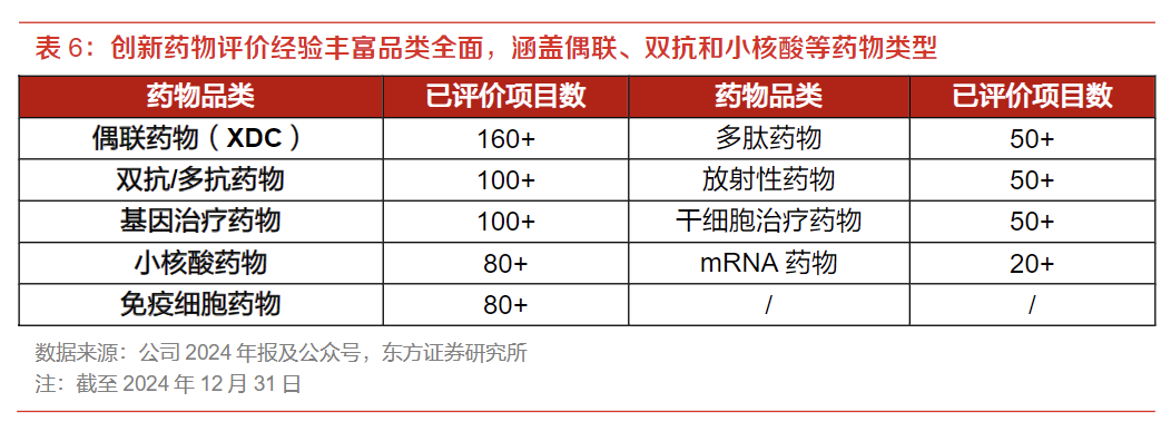 4)创新经验丰富。围绕新靶点、新分子和新技术进行研发突破,拥有业内稀缺的放射性药物影像评价技术平台,并布局AI、类器官等前沿技术。截至24年底,公司已协助完成近200个创新药的研究服务,全面覆盖小分子、双(多)抗、ADC和放射性药物等。