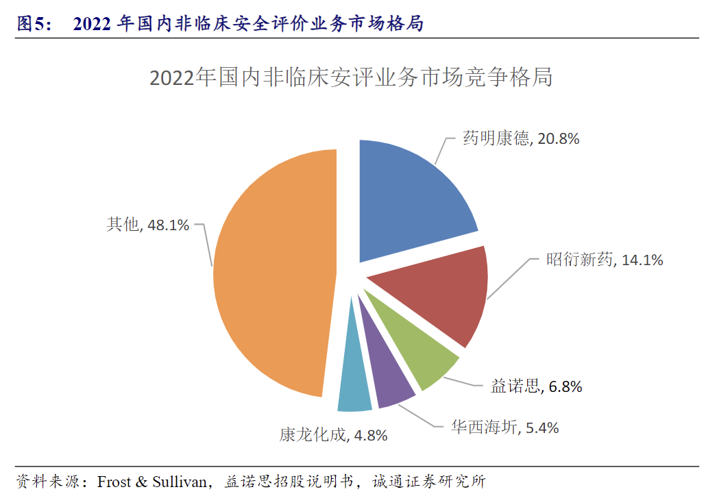 国内安评龙头之一,优势突出。公司主营创新药研究外包服务,在临床前安全性评价领域已跻身国内第三,竞争优势突出: