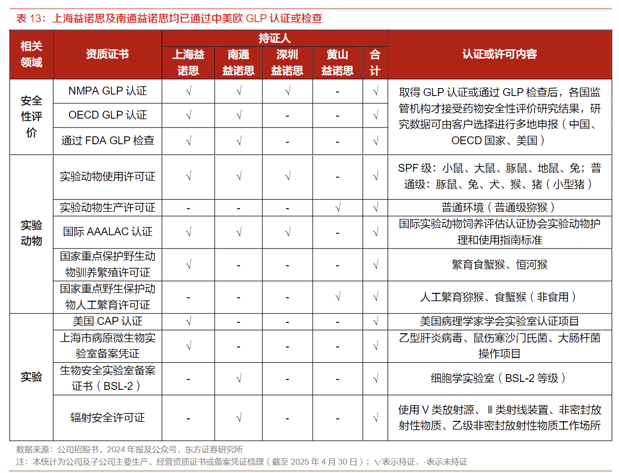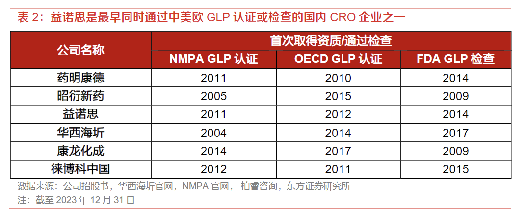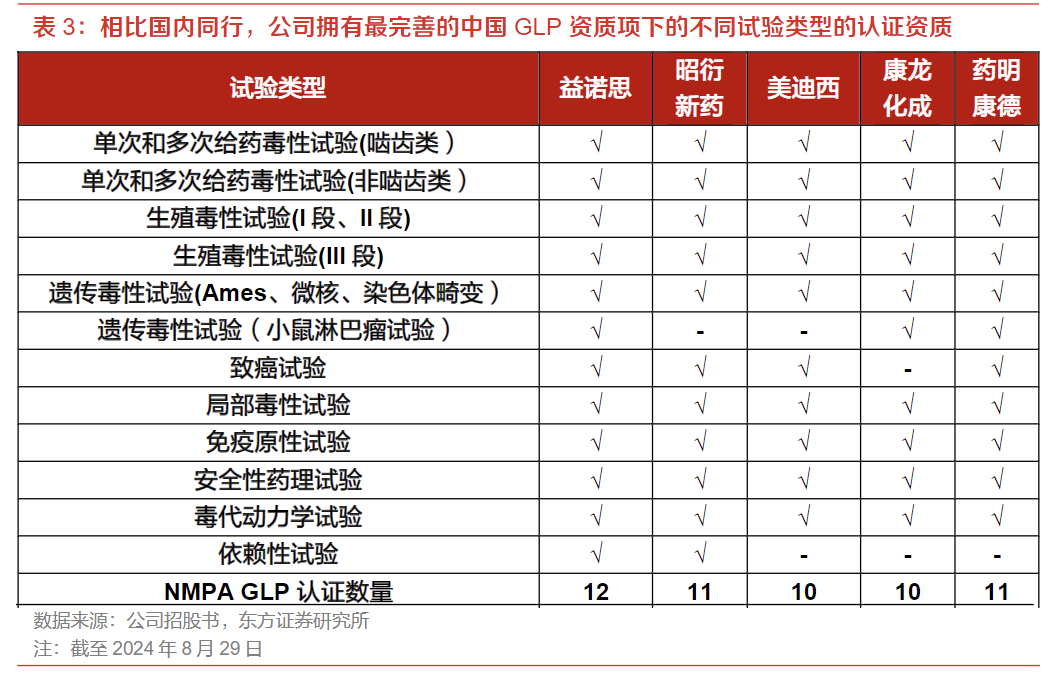 3)资质齐全。作为国内最早同时获得NMPA、OECD和FDAGLP检查认证的企业之一,具备国际化服务能力;
