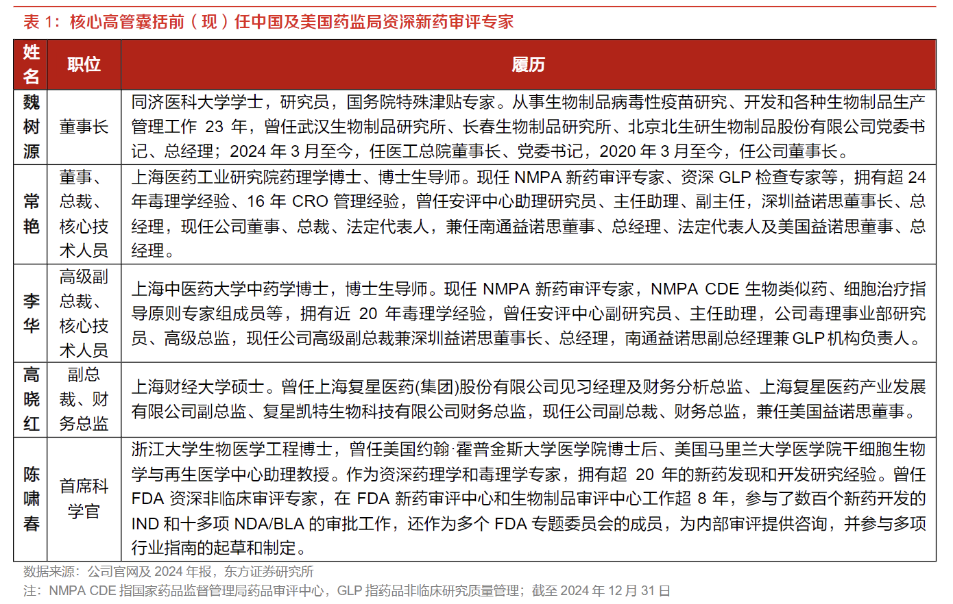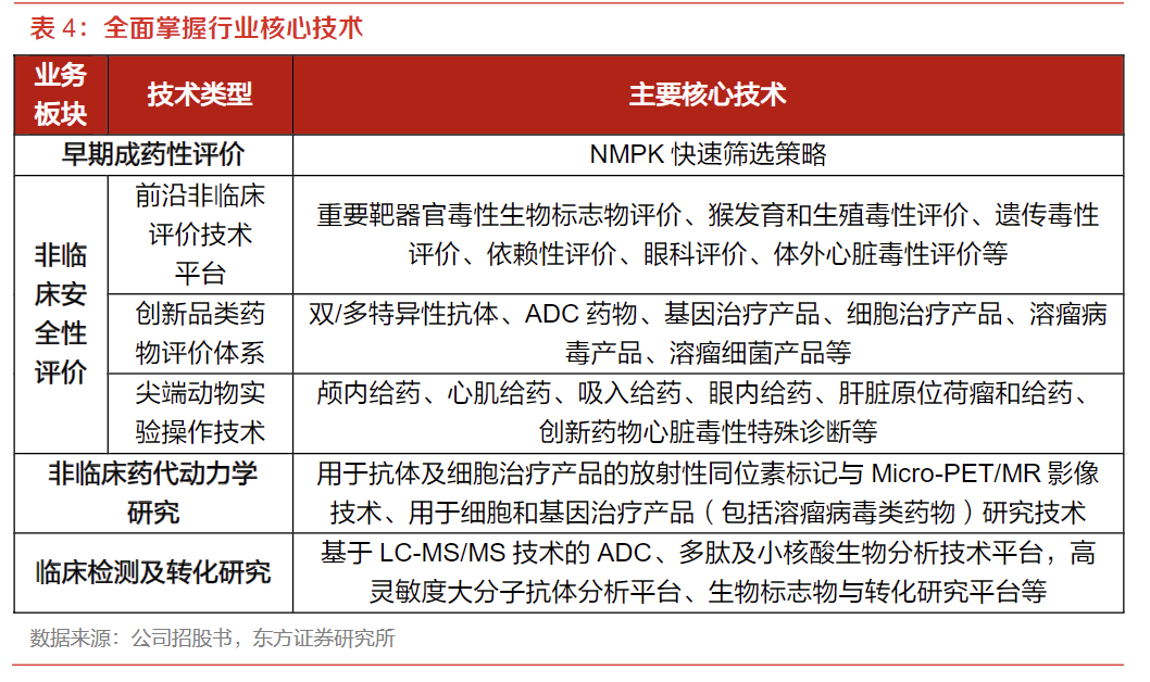 2)核心团队专业资深。带领公司在国内外创新药研发规则、GLP国际标准认证、毒理学技术趋势等方面走在行业最前列;