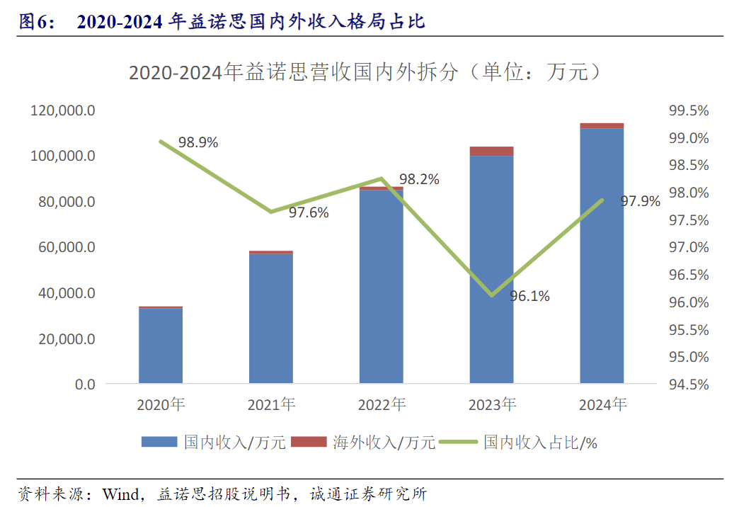 横向拓展成为一站式CRO企业,海外扩张提升收入天花板公司主营业务以非临床安评优势业务为核心,向非临床药代动力学、药效学和临床研究CRO服务横向拓展,打造一站式服务解决方案。药代动力学是公司第二大业务,主要研究药物在人体内吸收、分布、代谢和排泄的过程。益诺思是国内少数具备放射性同位素标记研究能力的公司。随着产能逐渐释放,公司药代动力学评价子业务营收快速增长,毛利率逐年上升。2021-2022年连续两年药代动力学业务营收保持80%以上增长高增长,业务营收规模已达亿元左右;毛利率从2022年开始显著改善,2023年毛利率为45.2%,同比2021年大幅提升22pct。临床CRO盈利能力改善,2024年临床CRO营收4694万元,同比增长27.2%,毛利率大幅改善(40.3%)。2024年,国内客户收入占比达97.8%;未来,公司将以美国大型制药公司的成药性评价与美国中小客户的注册申报类业务为切入点,引流国际业务;以并购或自建方式在海外建立临床样本生物分析实验室,通过国内国外实验室联动,满足国内客户的国际多中心临床试验的生物分析需求。