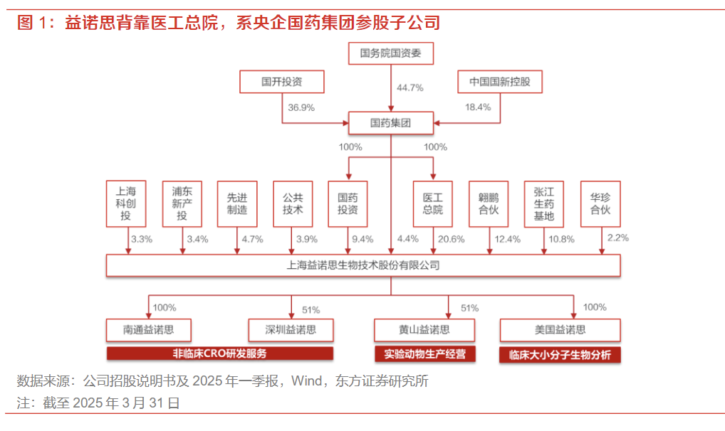 公司主营业务以非临床安全性评价业务为核心,2020-2024年在公司总营收占比均在82%以上,非临床药代动力学研究是公司第二大业务,2023年占公司收入的9.2%;其他业务占比5.2%左右。公司客户主要是国内创新药企,每年90%以上收入来自I类创新药物非临床研究服务。公司持股结构相对集中,国资、产投基金和员工持股平台共持。公司持股结构相对集中,国资及国资主导的产投基金持有公司超过60%股权,员工持股平台持股12.35%,三大股东类型合计持股接近73%;其中,国药集团为公司控股股东,直接和间接共持股34.42%。