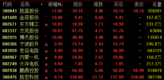 人形机器人概念再度活跃,截至收盘,胜蓝股份涨近13%,金田股份、东方精工、杰克股份、博杰股份、内蒙一机等均涨停,胜宏科技涨近10%,中大力德涨约6%。其中,杰克股份、内蒙一机、胜宏科技、中大力德等均续创新高。