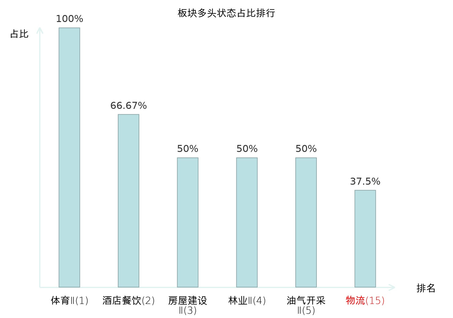 全市场所有行业板块中主力多头状态占比排名中,体育Ⅱ板块位居第一。国有大型银行Ⅱ板块名次提升最快,较昨日上升100位。