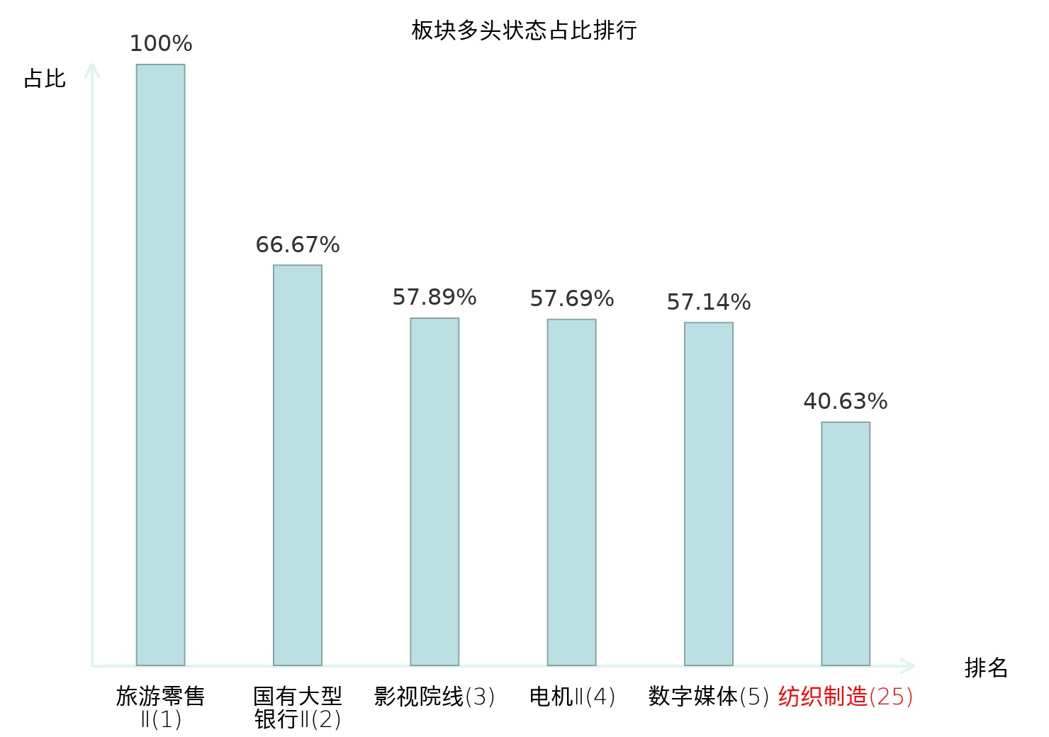 全市场所有行业板块中主力多头状态占比排名中,旅游零售Ⅱ板块位居第一。专业连锁Ⅱ板块名次提升最快,较昨日上升56位。