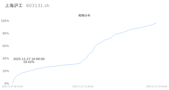 603131上海沪工2025年11月27日成交46.85万手,成交金额12.85亿,相较昨日放量3.43万手,换手率14.73%,成交活跃。