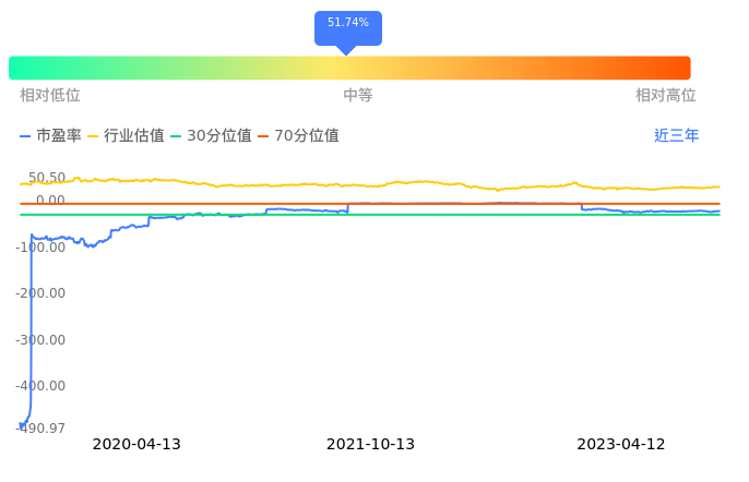 2023年04月12日,碳元科技下跌1.49%收于11.23,今日成交金额3270.98万元。下文将从市盈率PETTM、市净率PB、市现率3个角度去分析公司估值情况。