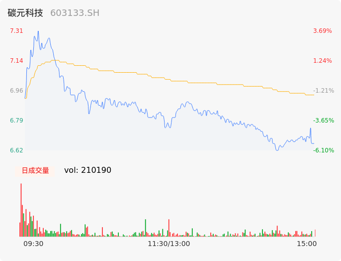 04月25日,碳元科技收报6.66,股价涨幅-5.53%,成交金额1.46亿元,换手率10.05%。