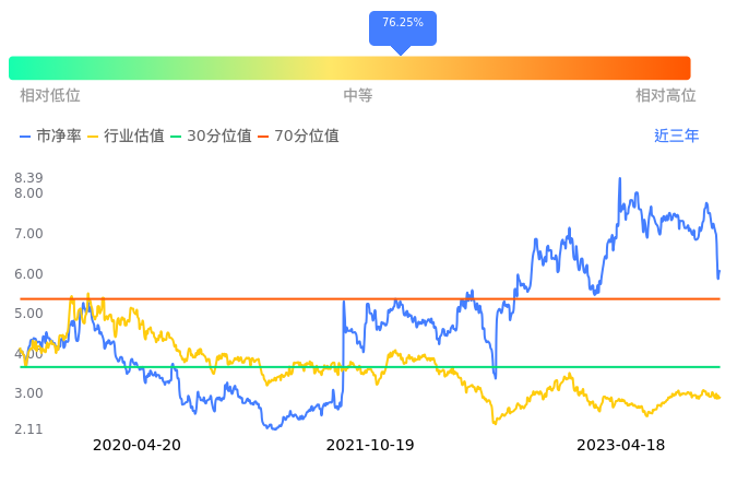 2023年04月18日,碳元科技上涨0.82%收于9.84,今日成交金额9863.46万元。下文将从市盈率PETTM、市净率PB、市现率3个角度去分析公司估值情况。