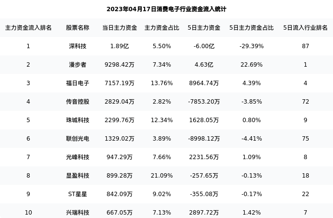 从主力资金流向来看,消费电子行业今日主力资金流入77.24亿元,在所有申万二级行业中排名:69/131。